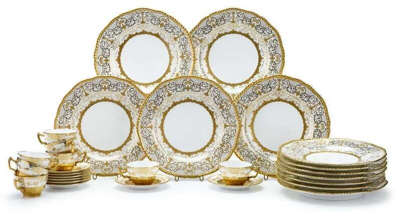 Twelve Coalport service plates early 20th century, retailed by ovington