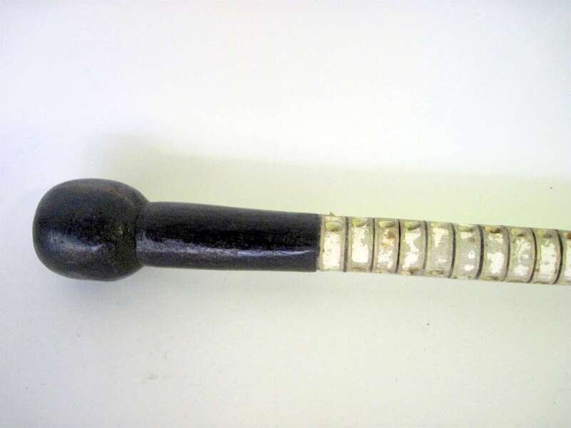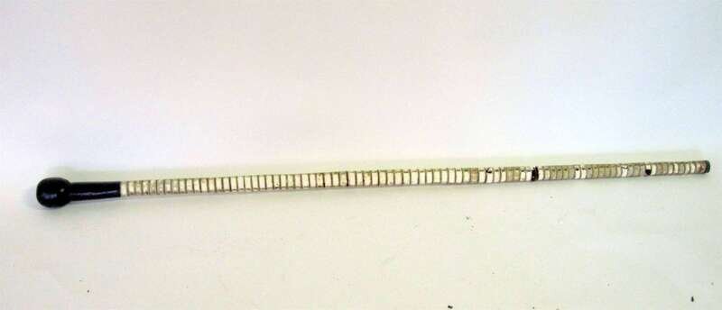 With an ebonized handle leading to a cylindrical shaft.