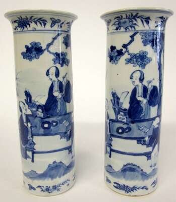 Pair of Chinese blue and white porcelain beaker vases kangxi mark, 19th/20th century