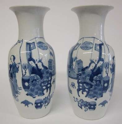 Pair of Chinese blue and white vases kangxi mark, 19th century