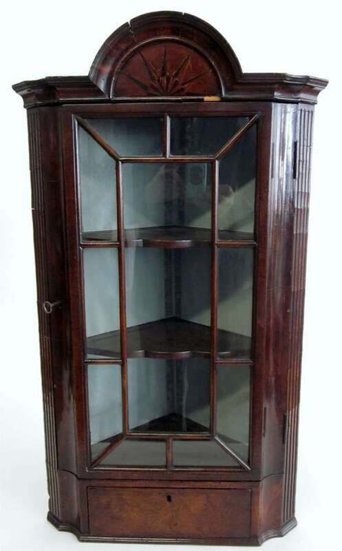 George III mahogany and parquetry inlaid corner cabinet 18th century