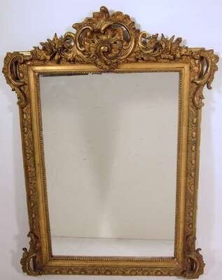 Rectangular plate, surmounted with c-scroll crest over conforming frame.
