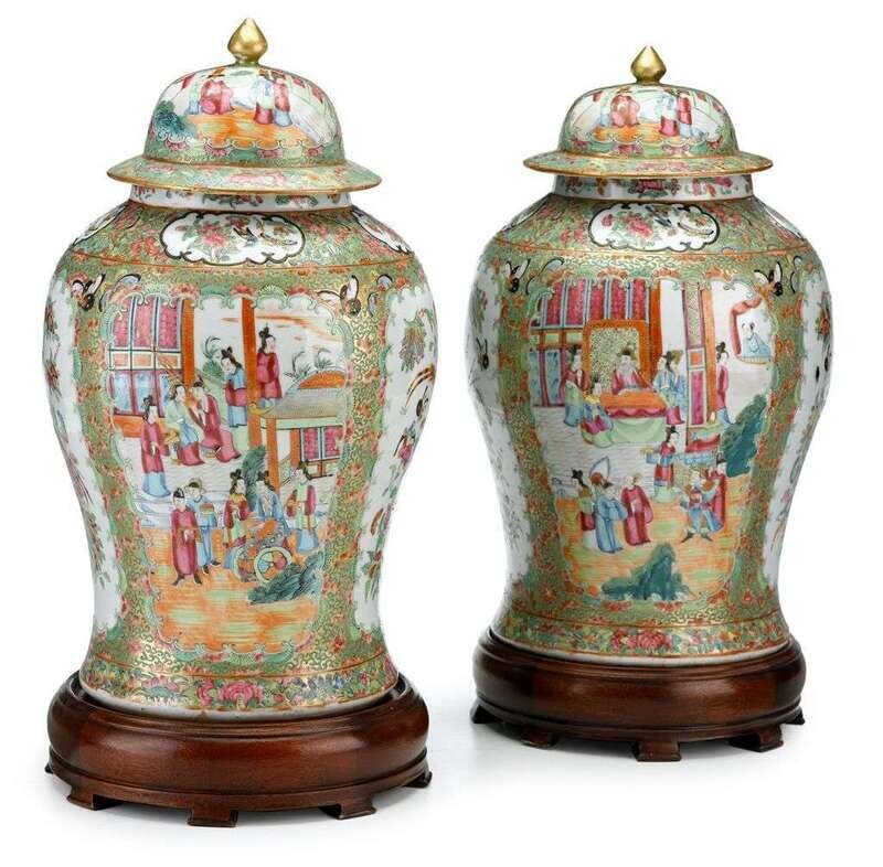 Impressive pair of Chinese export rose medallion covered vases 19th century