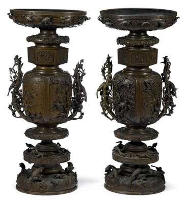 Large pair of Japanese bronze koro meiji period