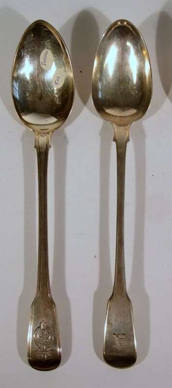One, London, 1815, maker's mark indistinct, the handle bearing the crest of The Kings Own Regiment; the other William Eley, Wiliam Fearn, and William Chawner, London, 1812, with armorial crest. (2).