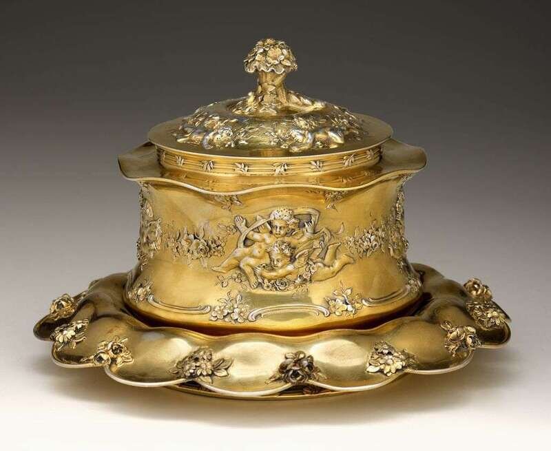 Tiffany silver gilt covered sugar bowl and undertray late 19th/early 20th century
