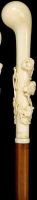 German carved ivory and malacca cane mid 19th century