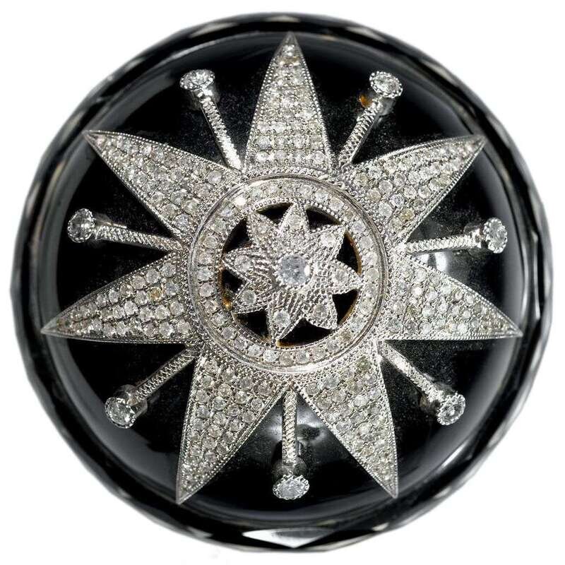 Fine French ivory, onyx, white gold, and diamond walking cane early 20th century