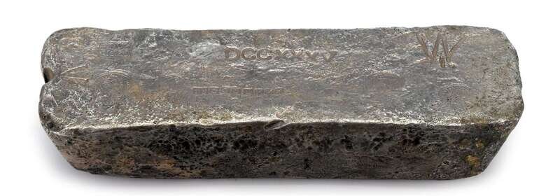 A large silver bar dated 1621, recovered from the wreck of the nuestra senora de atocha in 1985