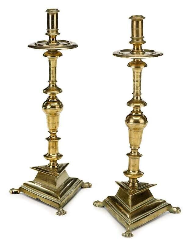 Pair of Spanish baroque style brass candlesticks