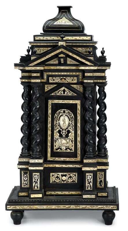 Italian bone inlaid, pen engraved ebonised tabernacle 17th century