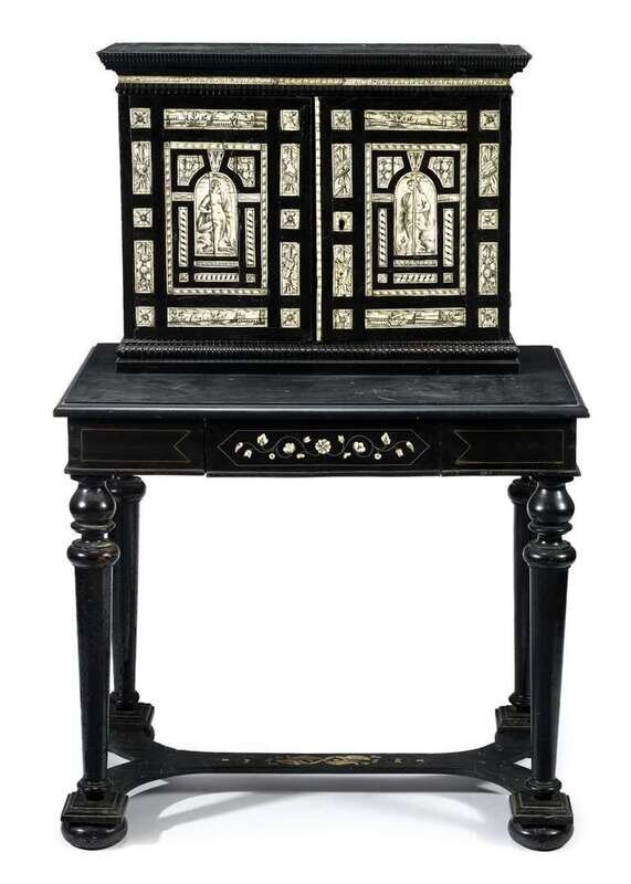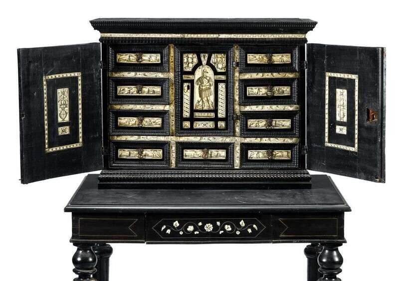 Italian bone inlaid pen engraved ebonised cabinet on stand probably naples, 17th century and later