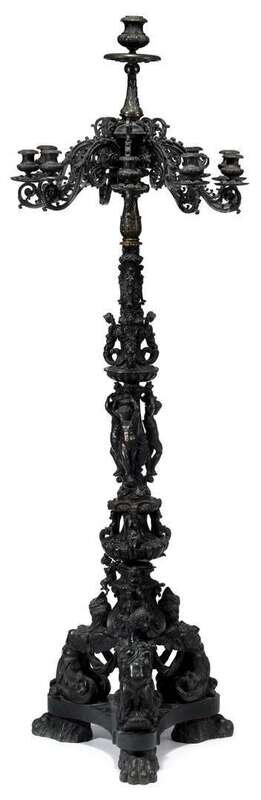 Tall Continental Renaissance revival bronze ten-light candelabrum 19th century