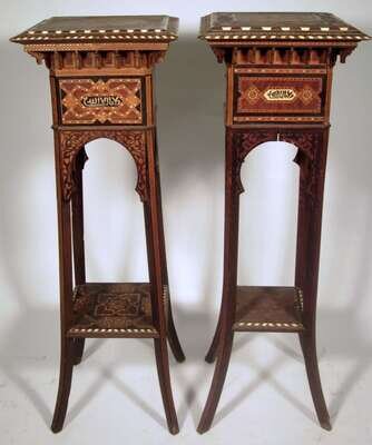 Pair of Moorish parquetry and ivory inlaid jardiniere stands 19th century