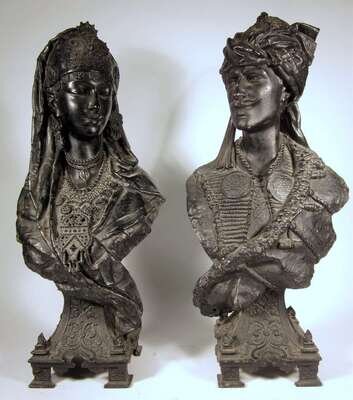 Pair of Continental spelter Orientalist busts 19th century
