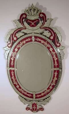 Venetian style colorless and ruby glass mirror early 20th century