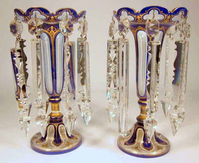 Pair of Continental blue glass and luster sconces late 19th century