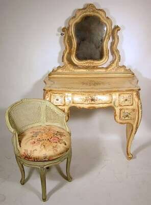 Louis XV style cream painted and parcel gilt dressing table