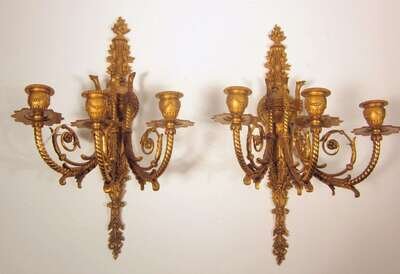 Pair of Louis XVI style gilt metal wall sconces early 20th century