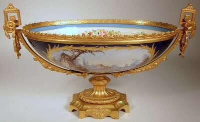 Sevres style gilt bronze mounted and painted porcelain centerpiece early 20th century
