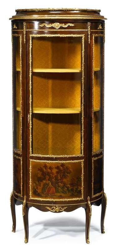 Louis XVI style gilt metal mounted mahogany vernis martin curio cabinet 20th century