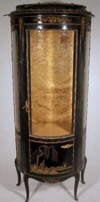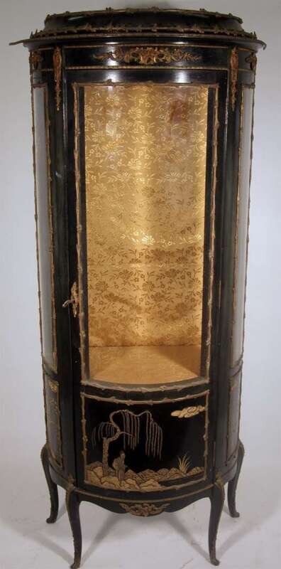 French Louis XVI style black laquered and gilt metal mounted chinoiserie vitrine 19th century