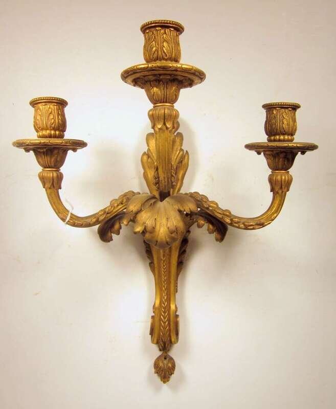 The acanthus cast support issuing three scrolling arms.