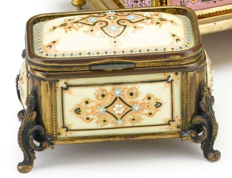 French bronze and yellow ground porcelain enameled 'jeweled' casket 19th century