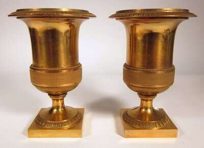 Pair of Empire style gilt metal urns 19th century