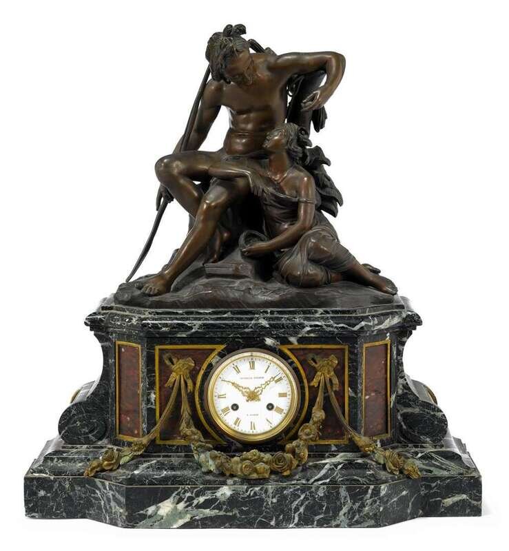 Fine French marble and bronze mounted mantle clock paris, lerolle freres, 19th century