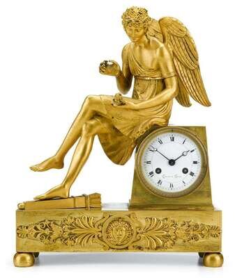 French Empire gilt bronze mantel clock circa 1810, signed lesieur, paris