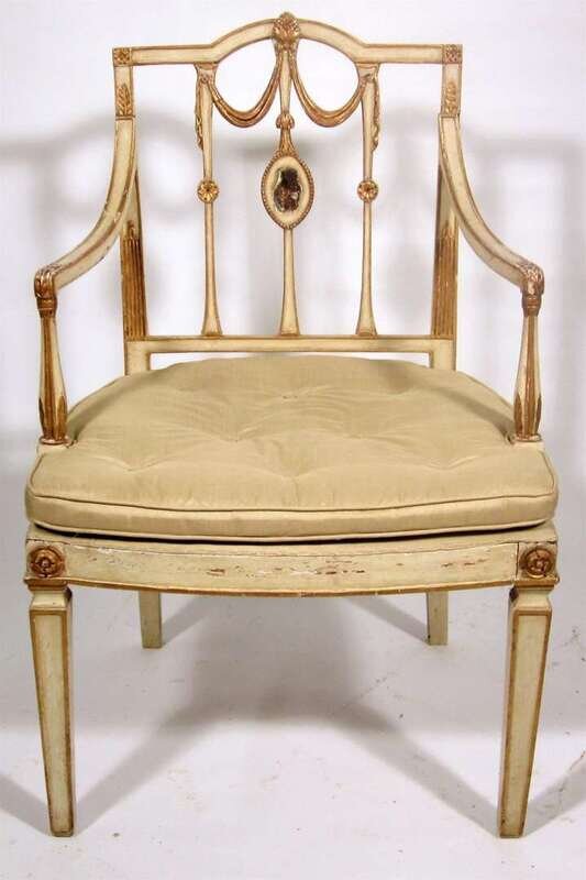 George III beechwood cream painted and gilt armchair 19th century, in the hepplewhite style