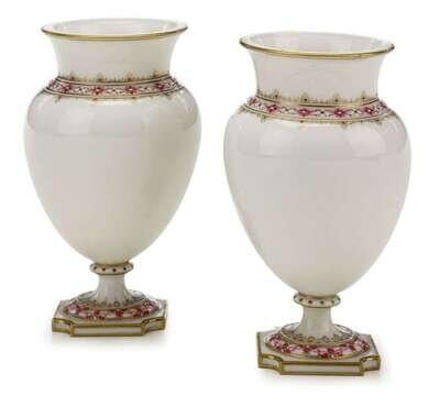 Pair of Sevres 'jeweled' white vases late19th century