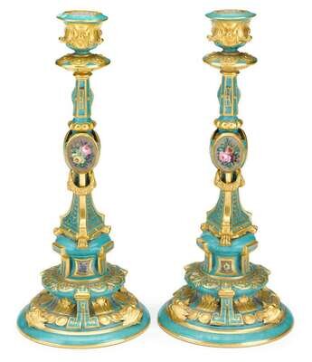 Pair of Russian Imperial porcelain candlesticks imperial porcelain factory, reign of alexander ii