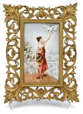 Berlin porcelain plaque "girl with parrot" after the painting by conrad kiesel