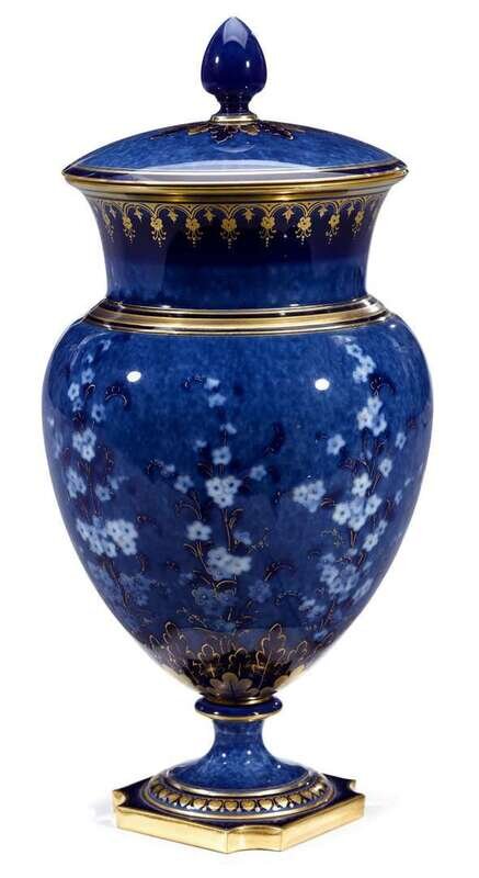 Sevres porcelain blue jasper and gilt painted covered urn late 19th century, probably painted by maximilien-ferdinand mérigot