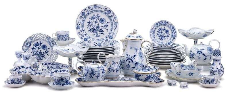 Large group of Meissen blue onion pattern porcelain tablewares 19th/20th century