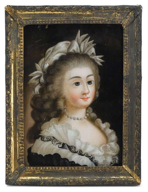 Pair of Chinese reverse painted western subject portraits on glass qing dynasty