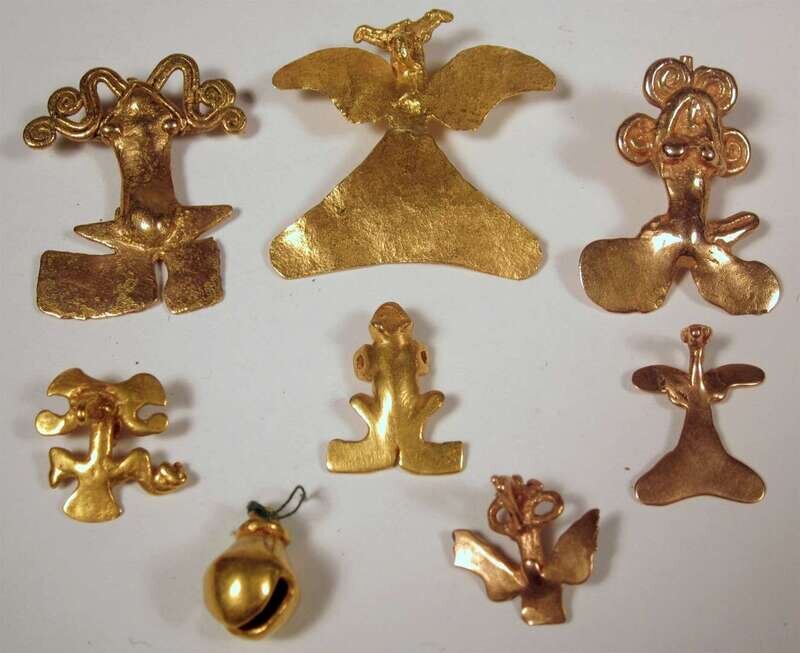 Collection of eight small Costa Rican gold pendants circa 800-1500