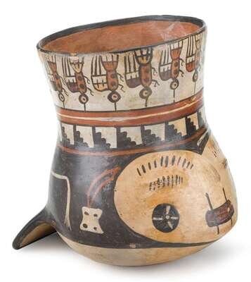 Nazca polychrome pottery head vessel peru, circa 500ad