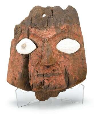 Pre-Columbian painted wood mummy bale mask central america, circa 500-1000ad
