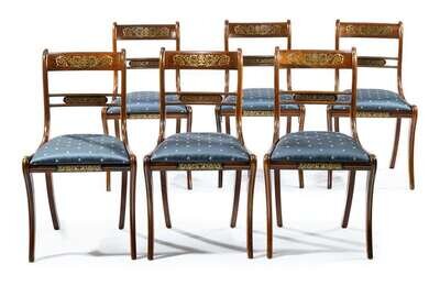 Set of six Regency rosewood and brass inlaid sidechairs 19th century