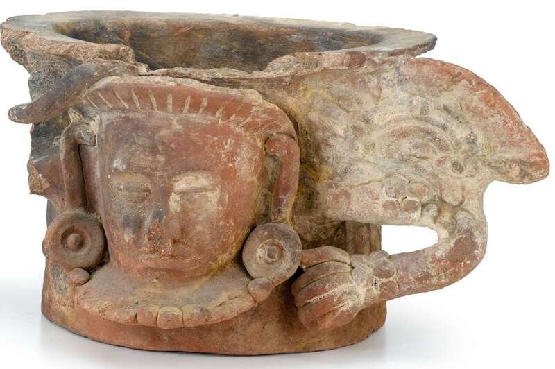 Central American polychrome painted pottery incensario mexico or guatemala, 12th century or earlier