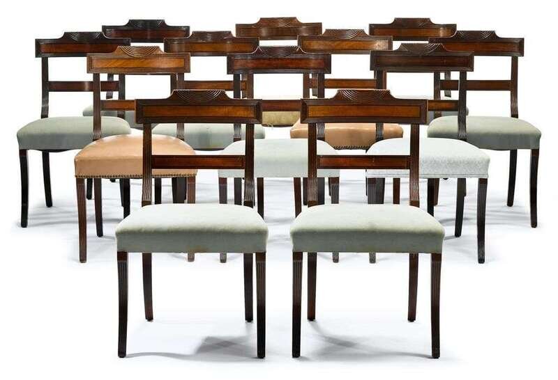 Set of twelve Regency style mahogany and ebony strung side chairs