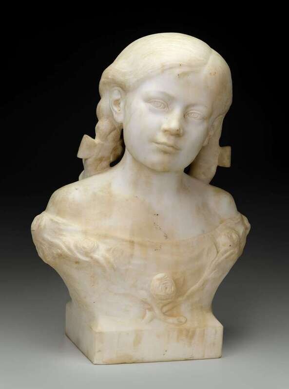 English white marble bust of a young girl signed m.hopkins, dated 1908