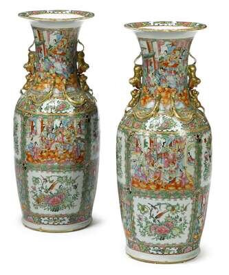 Pair of Chinese rose medallion porcelain vases canton, 19th century