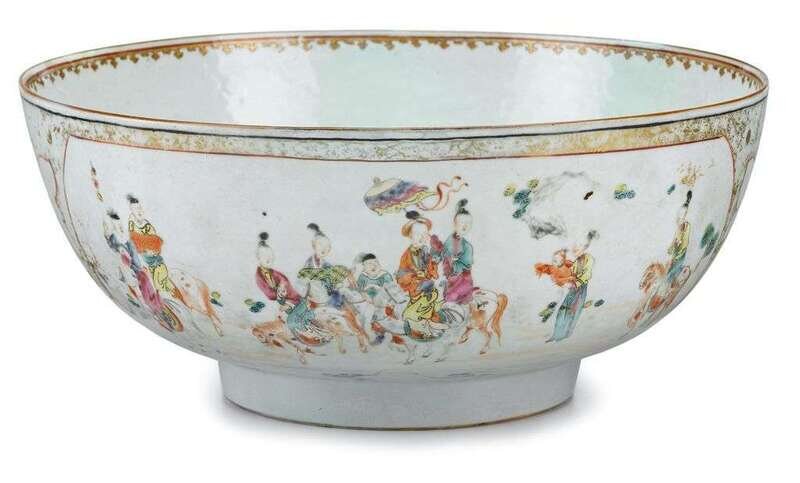 Chinese export porcelain punchbowl qianlong period, dated 1757