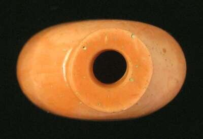 Of ovoid form with swirling color and pitted texture resembling that of pink coral.
