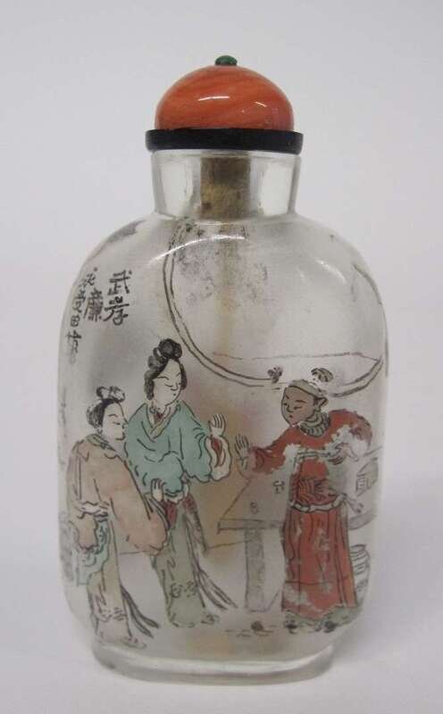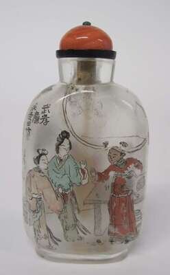 Chinese interior painted glass snuff bottle, Wu Xiao & Yong Shou Tian