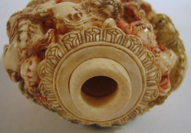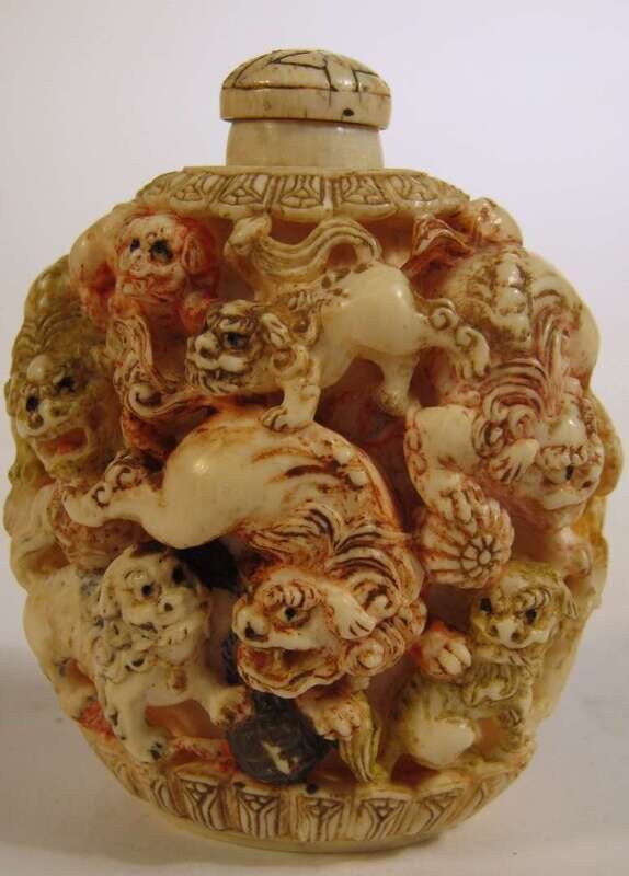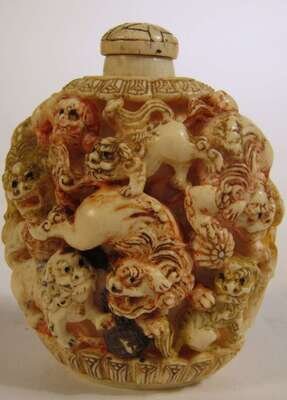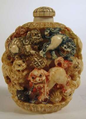 Chinese polychrome elephant ivory fu lion snuff bottle